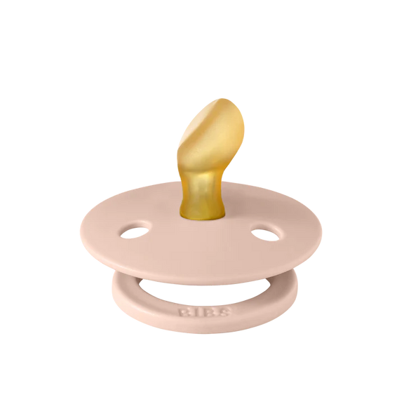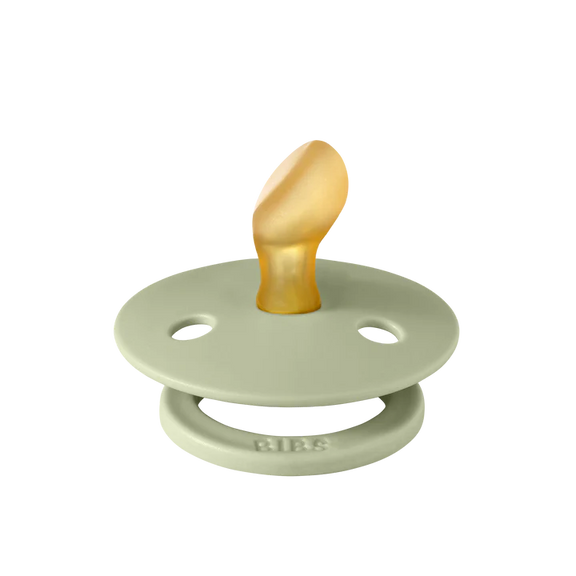 This NEW BIBS pacifier features a latex anatomical nipple - also known as an orthodontic nipple - which is curved at the top for a natural fit to the baby’s palate with an angled tip for easy tongue placement.