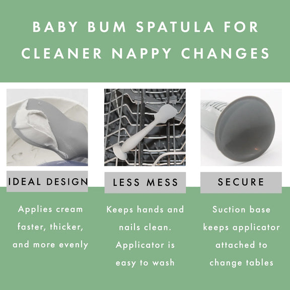 Our Bum Cream Applicator is just what it sounds like – a bum spatula to apply nappy creams. We know it sounds silly, but give it a try. We promise, it's a game changer! No more poo and diaper cream caked under the fingernails. A clean and convenient solution for parents and caretakers. And to boot, many babies love the sensation of this brush.