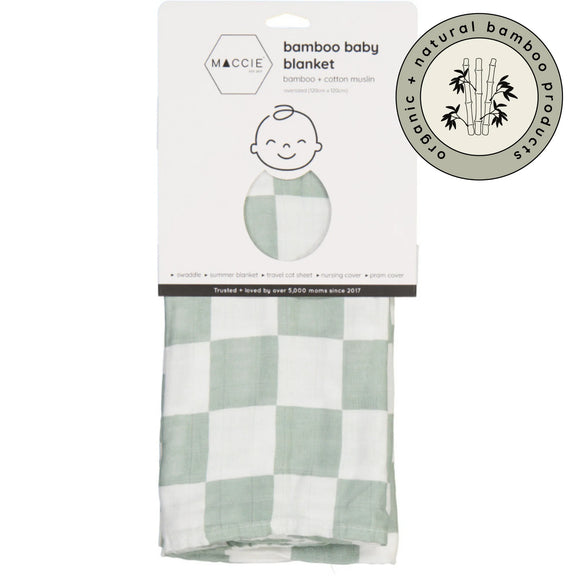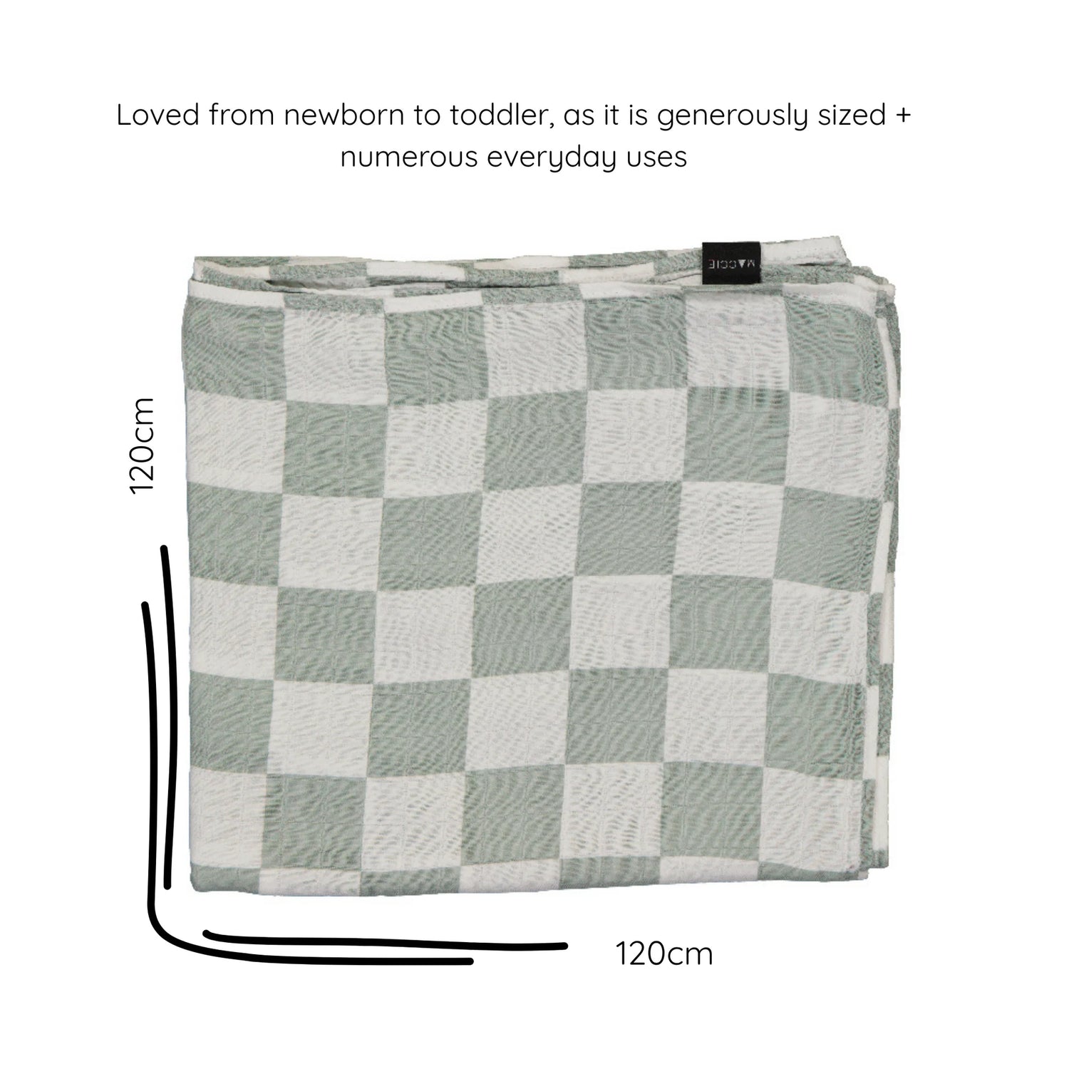 Bamboo Muslin Swaddle Baby Blanket | Sage Green Checkered