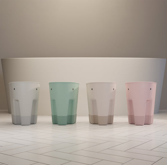 Ellie’s clever design features a cute yet practical trunk handle to comfortably scoop up toys after bath time. Large holes at the bottom of the caddy allow the water to drain away quickly and toys to air dry, helping to reduce the risk of mould. The separate drip tray catches any excess water and keeps surfaces dry, whilst the freestanding design removes the need for suction cups to hold or hang the caddy. Large, yet compact design, Ellie can hold lots of various sized toys but not take up too much space. Keeping bathrooms clutter free and bath toys dry. Thoughtfully Eco, Ellie is