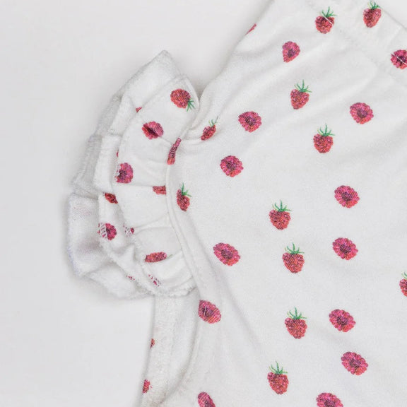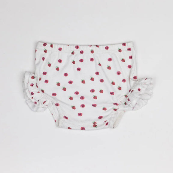 Cotton raspberry printed little shorties for your sweet girl, because who doesn't love a little frill!