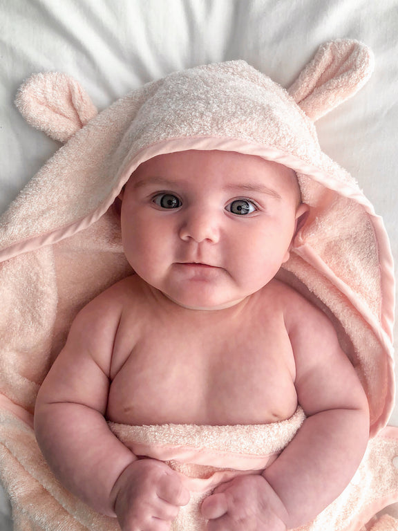 The towel also includes a snug, baby hood with cute ears and is made from plush