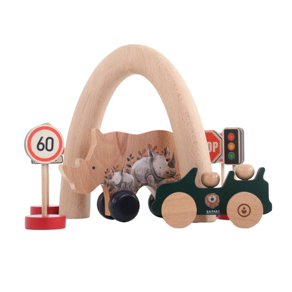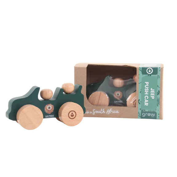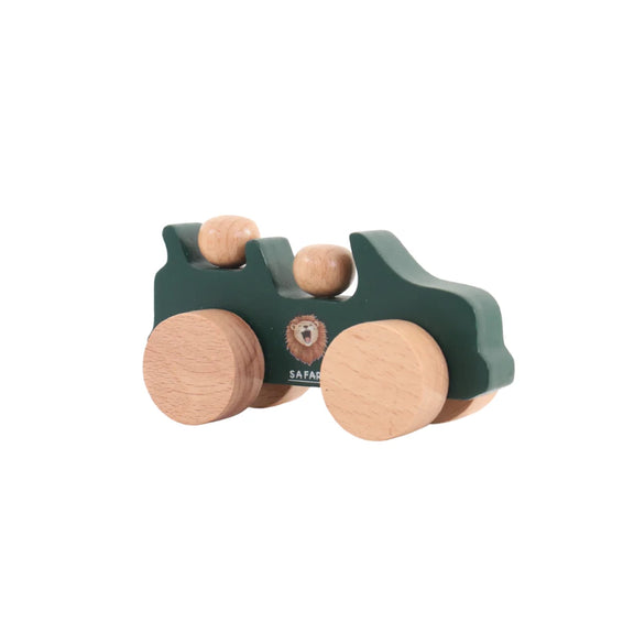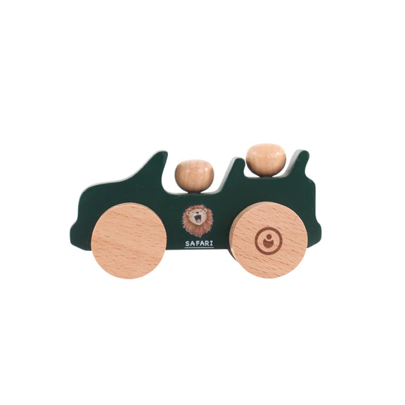 A wooden safari push car is a delightful addition to any child's play are or toy collection.
