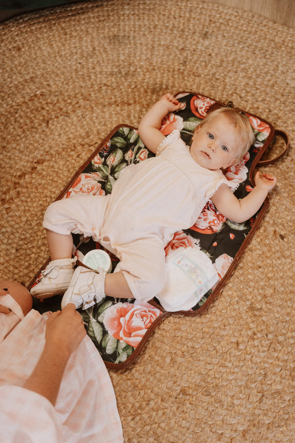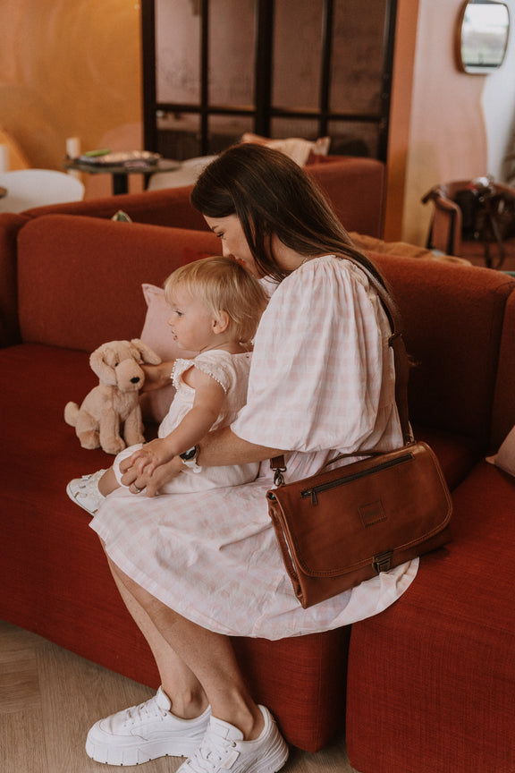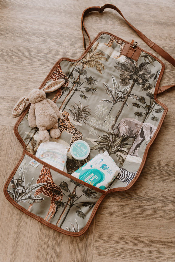 For the mom who is constantly on the go! This gorgeous genuine leather, locally made baby nappy changing clutch is easy to clean and lightweight to carry around all day. With a pouch for a couple of nappies + bum cream + wet wipes, it is the ultimate convenient mini nappy bag. There is a zip space in front for your phone and cards too!