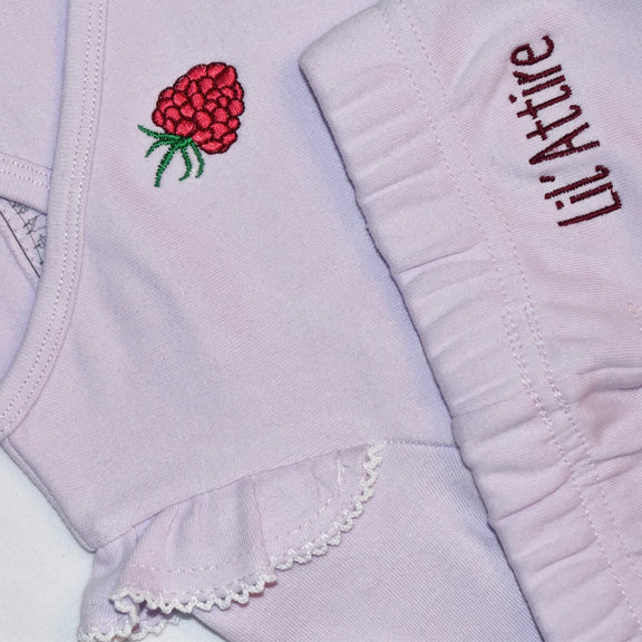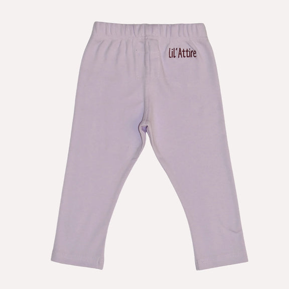 Long Purple Tights with Lil'Attire embroidery on the back of the tights.