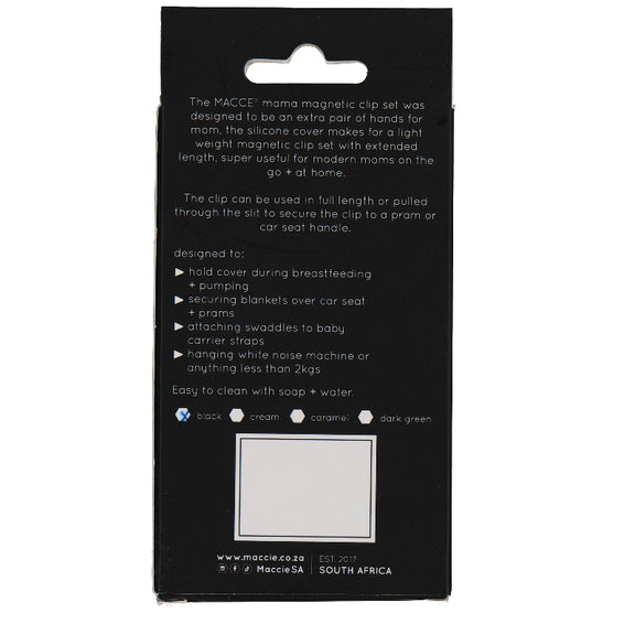 Introducing the new MACCIE MAMA magnetic clip set, an extra-length silicone magnetic clip set that is lightweight and durable.