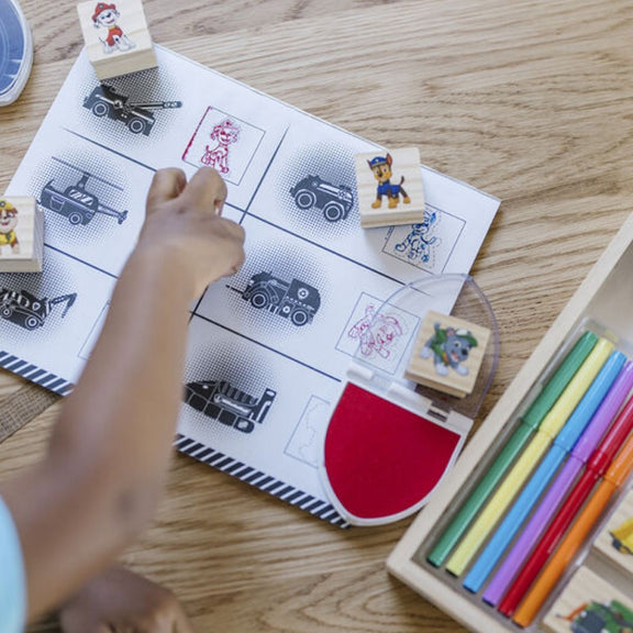 - Create countless PAW Patrol™ adventures with this 25-piece wooden stamps set with activity pad and markers