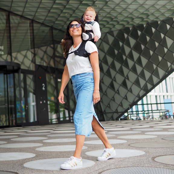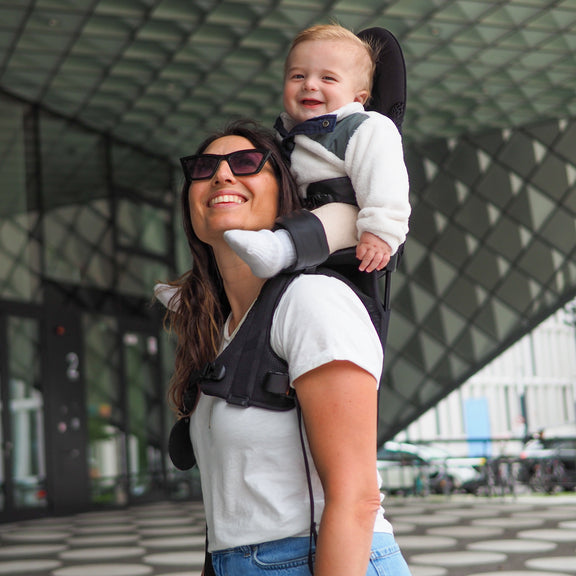 - SAFE AND HAPPY EXPLORERS: While discovering the world, your child sits safely on your shoulders secured by a waist belt and leg straps. A harness with shoulder straps is included to give extra upper body support for the smallest kids (6-10 months). An extendable padded seat provides maximum comfort for the child. The supportive backrest is designed to help the child sit up straight while sitting in the carrier on your