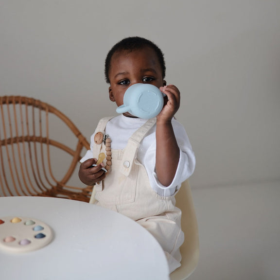 Make the transition from baby bottle to cup much easier with a Training Cup + Straw from Mushie. It is designed for little hands to hold while building up fine motor skills and fits elegantly into any modern home.