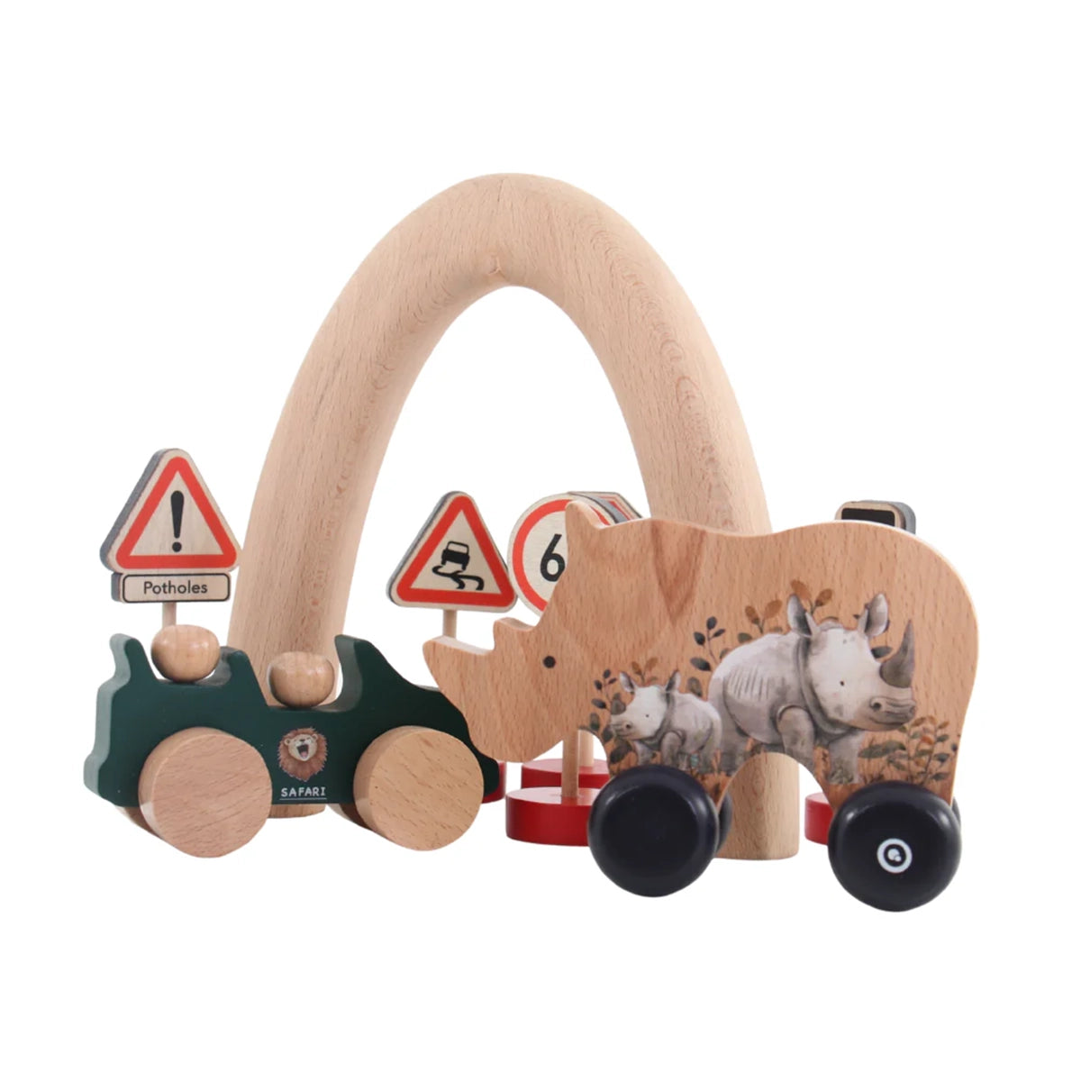 - Rhino design: A charming, handcrafted wooden rhino shape with intricate details and print.