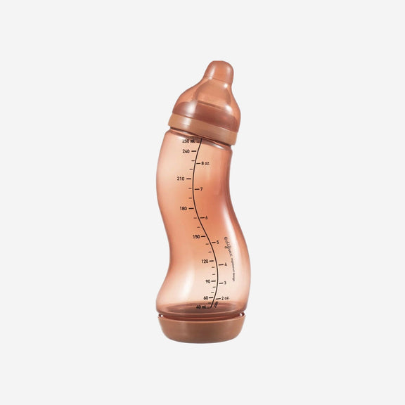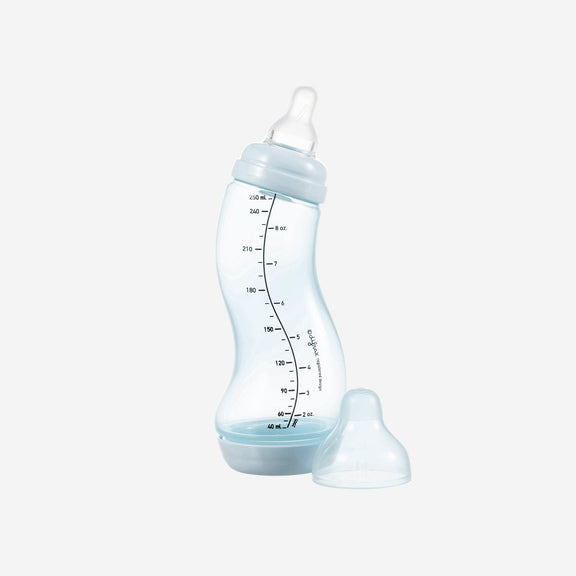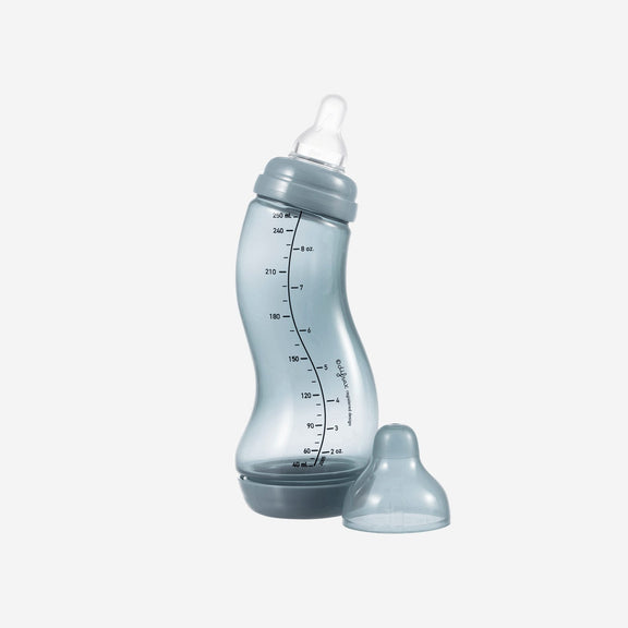 The Difrax S-baby bottle Natural 250 ml has been the most popular baby bottle amongst babies, mums and dads due to the unique anti-colic valve and the S-shaped bottle. These two special features put together ensure a constant and regular flow of nutrition. The S-baby bottle anti-colic can be used from birth and is a well-proven combination with breastfeeding.