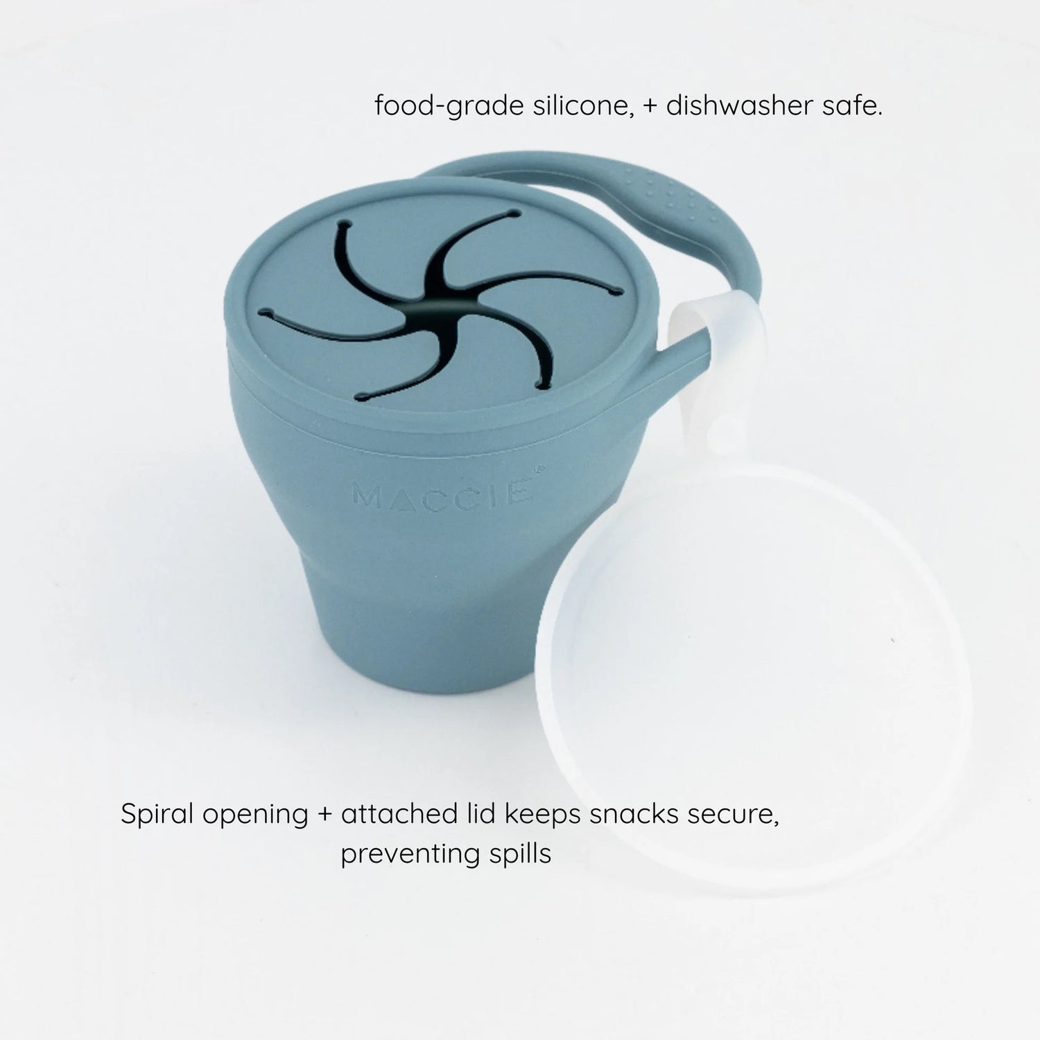 Say goodbye to snack time messes and hello to hassle-free snacking with our NEW MACCIE Stroll + Snack Cup, NOW with an attached lid. Yay for no more lost lids!