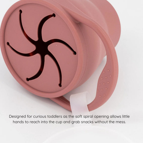 Specially designed for little hands and curious minds, the soft spiral opening allows little hands to reach into the cup and grab snacks without the mess- keeps crumbs contained, saving moms (and dads!) precious time and effort on clean-up. Embrace the joy of hassle-free outings and create lasting memories with your little explorer.