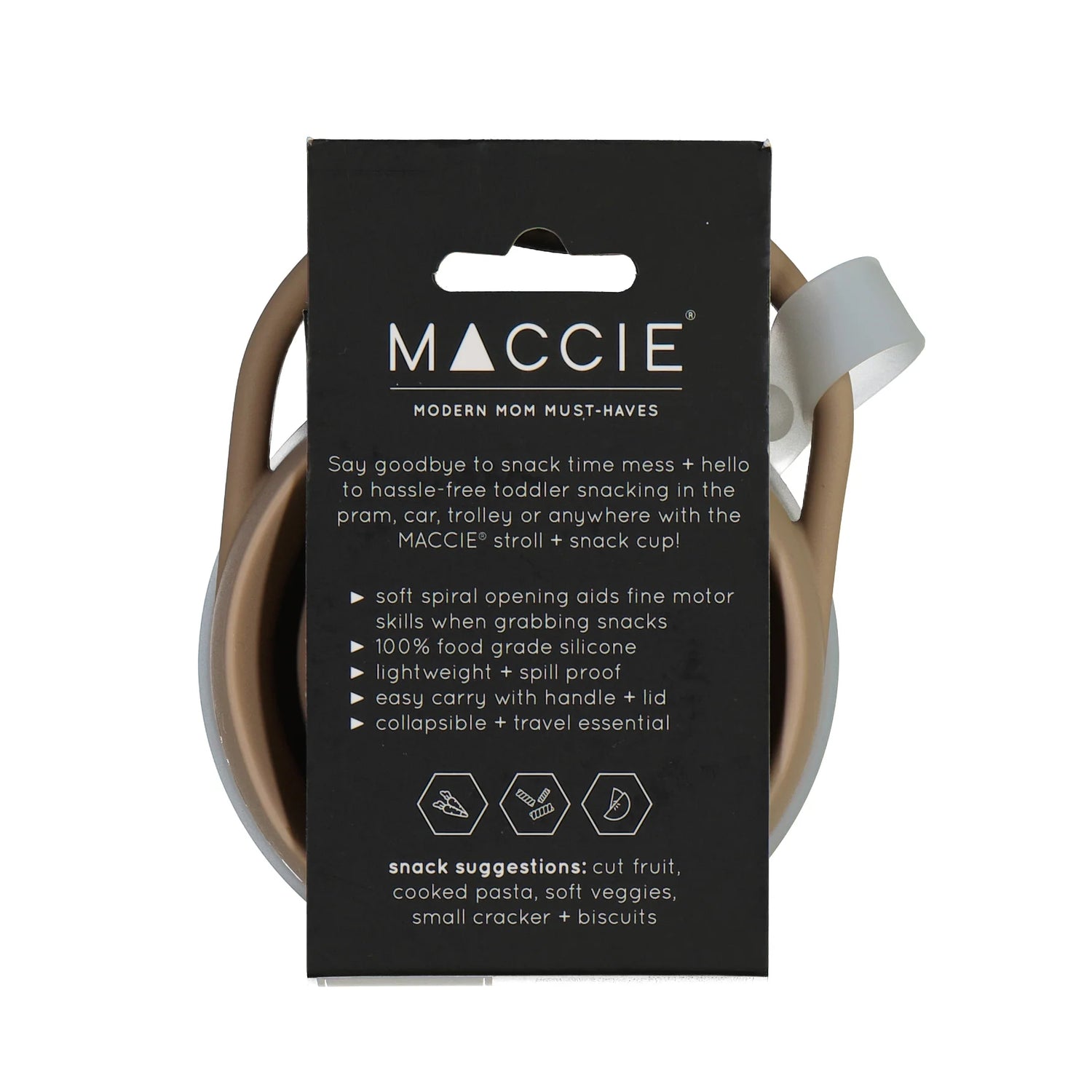Say goodbye to snack time messes and hello to hassle-free snacking with our NEW MACCIE Stroll + Snack Cup, NOW with an attached lid. Yay for no more lost lids!