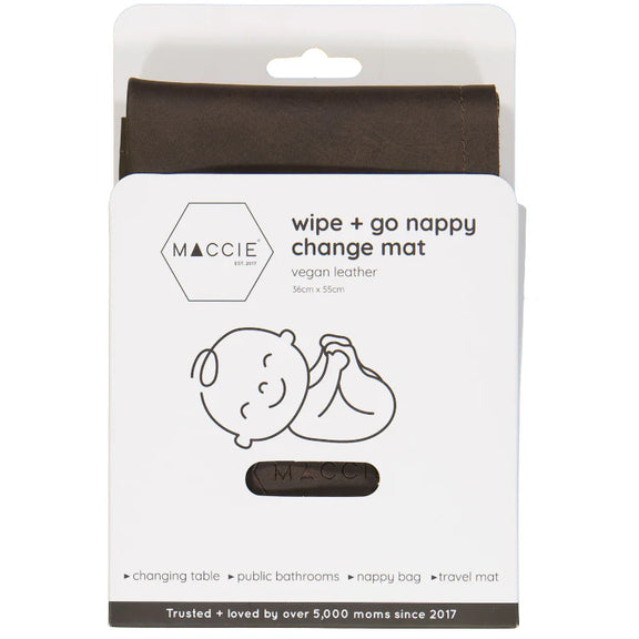 Made from soft and durable vegan leather, MACCIE baby changing mats are both stylish and practical. Ideal for home changing stations or on-the-go, MACCIE baby changing mats are water resistant and wipeable - clean any mishaps with a damp cloth or wet wipe.
