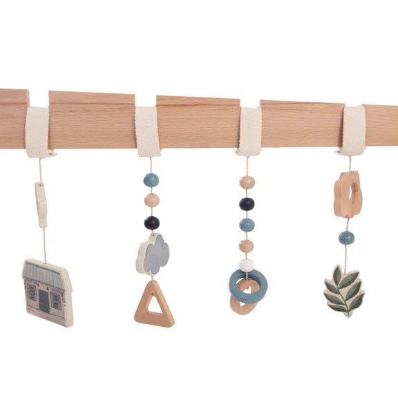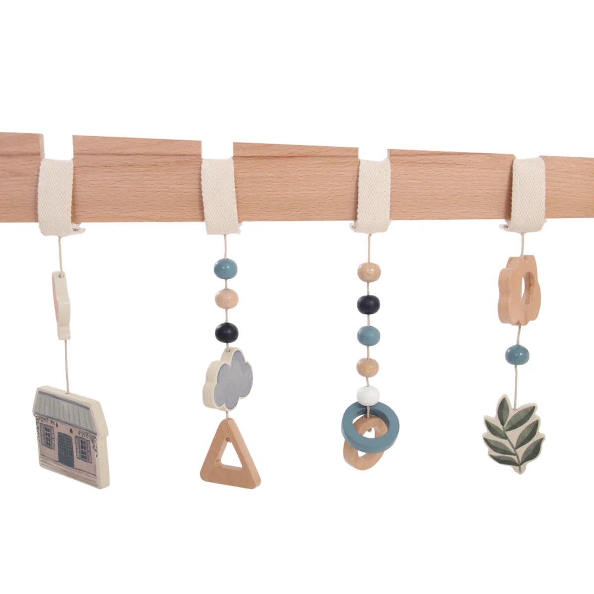 - Colourful Toys and Attachments: Various toys and wooden shapes to stimulate baby's senses.